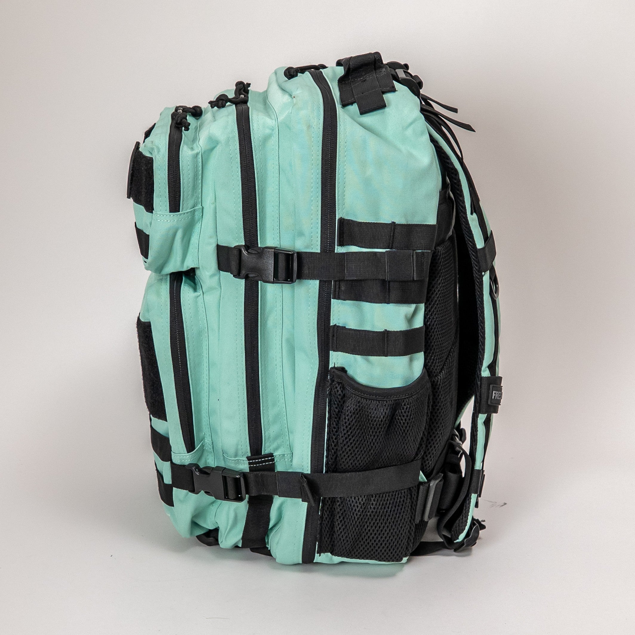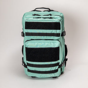 Incluye múltiples compartimentos funcionales, ideales para separar calzado, ropa, accesorios, shaker, artículos personales y equipo adicional sin perder orden ni acceso rápido. La estética militar se combina con una superficie de velcro frontal que permite personalizar la mochila completamente con parches, tags o insignias, dándole una identidad única.